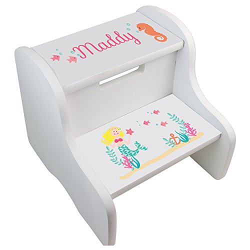 -. Title : Personalized Blonde Mermaid Princess White Two Step Stool