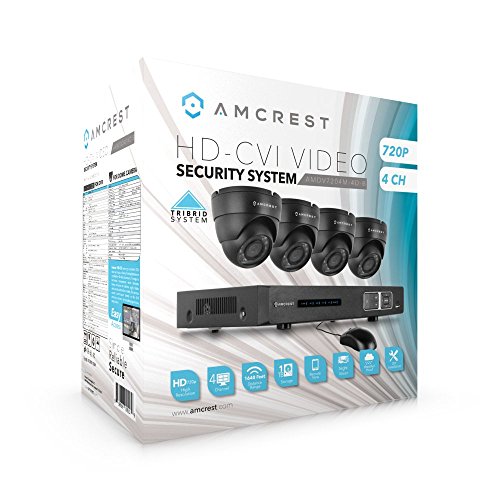 Amcrest ProHD 720P 4CH Video Security System - Four 1.0-Megapixel (1280TVL) Outdoor IP67 Dome 1TB HDD, Night Vision, Remote Smartphone Access, Black Mid (AMDV7204M-4D-B)