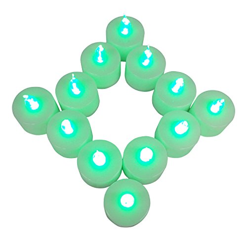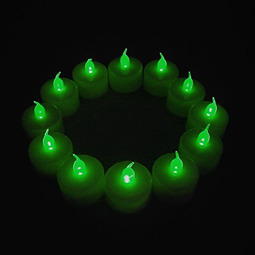 12-Packs Green, LED Plastic Tea Tealight Candles Lamp Flameless Shine Anniversary Wedding Party Restaurant Atmosphere Decoration Battery Operated