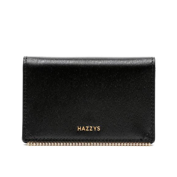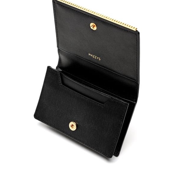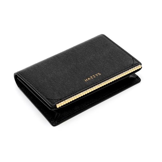 모헤어 엠보 가죽 소재에 블랙 컬러 바탕과 골드 큐빅 바 장식으로 포인트를 준 카드지갑 입니다.