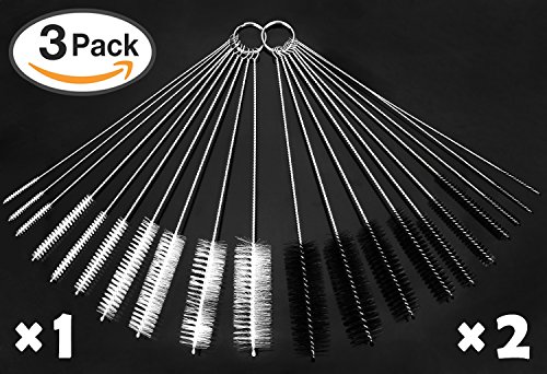 Nylon Tube Brush, 3 Pack KAMATO Tube Bottle Cleaning Brush For Drinking Straws Glasses Kyeboards Jwerlry Cleaning 20 Pieces Black & 10 Pieces White