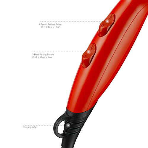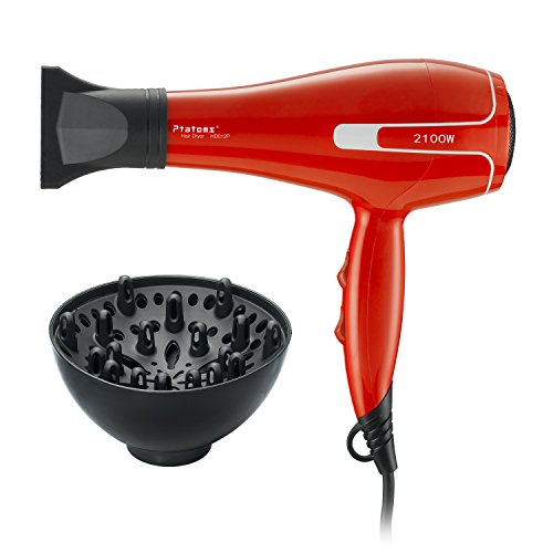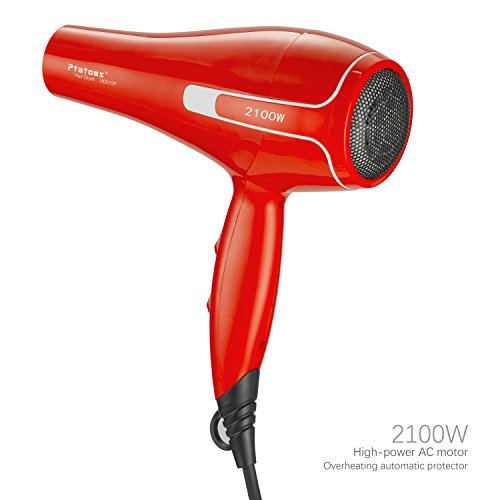 Hair Dryer Ptatoms Professional Ionic Blow Dryer AC 2100W with Blue Light 2 Speeds - 3 Heat Settings For Home Barbershop (Red)