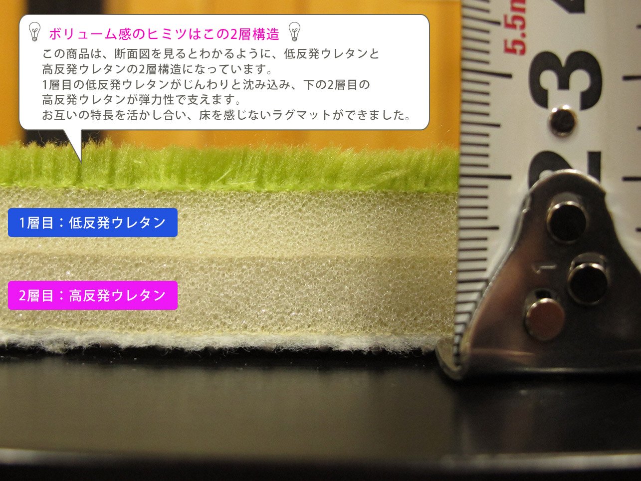 ● Covering the disadvantage that the low repulsion urethane foam sinks too much due to the two-layer structure.