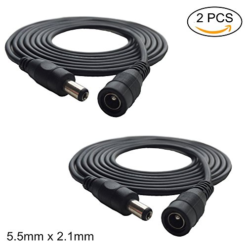 DZYDZR 2 PCS 2 Meter 2,1mm x 5,5mm DC 12V Adapter Kabel DC Stecker Verlangerungskabel mannlich zu weiblich schwarz, fur LED, CCTV, Auto, Monitore und vieles mehr (6,6ft)