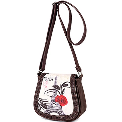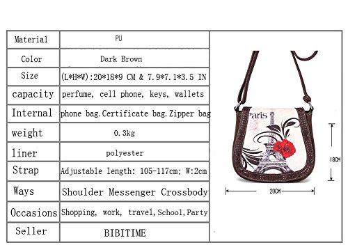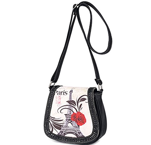 -. Feature : Hollow edge Design: edge with hollow leaves and flowers;central with Paris Tower and flower P.R.Inting / Size(L*H*W): 20 * 18 * 9 CM & 7.87 * 7.09 * 3.54 IN - Adjustable shoulder strap Length: 105-117cm, Width: 2cm / Interior cell phone pocket, multifunctional slip and back zipper pocket; You can store your phone,keys,wallet and other small things;Keep anything you need in your bag. / Perfect for day trips, vacation, travel, day hikes, school, camping and shopping. / Every bag has its unique charm not only because of its outlook but also because of its spirit. if you have a fantastic bag,you can attract all attention from the others everytime when you see a wonderful bag,you will feel happy