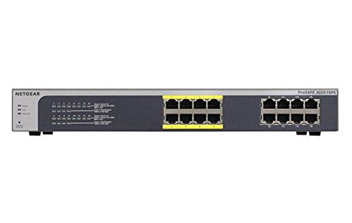 NETGEAR ProSAFE JGS516PE 16-Port Gigabit Rackmount PoE Web Managed (Plus) Switch with 8 PoE Ports 85w (JGS516PE-100NAS)