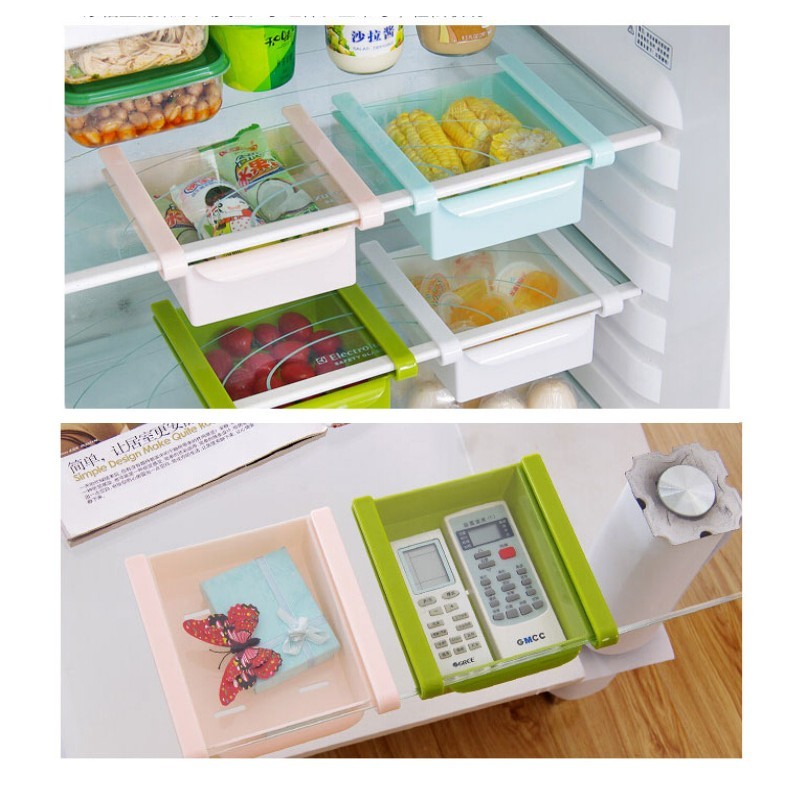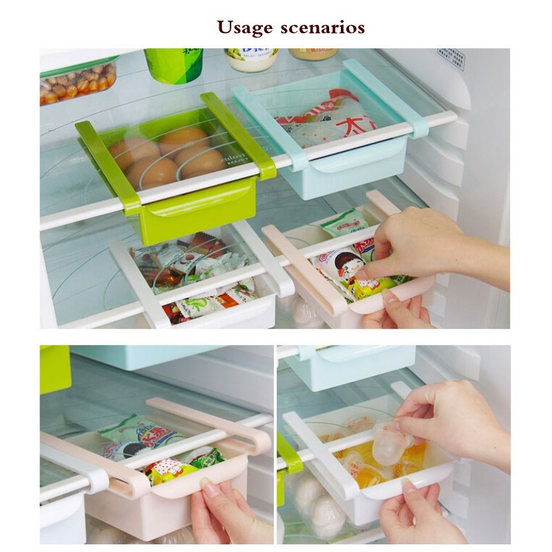 | Specification: Material: Plastic Color: White ,Pink,Green,Blue Size: 14x4.7 cm Package included: 1Pcs x Plastic Kitchen Refrigerator Fridge Storage Rack |