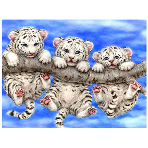Diy Diamond Painting Three Tigers Embroidery Handicrafts Full Square Animal Series Diamond Embroidery Animal Mosaic Picture Home Decor (11.8X15.7 inch)
