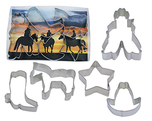 R & M Industries 5 Piece Cowboy Theme Cookie Cutter Set, Silver