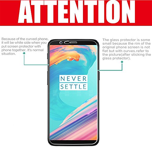 -. Feature : Precision cut to specifically fit OnePlus 5T. Please note that the screen protector will NOT cover the full screen, Only the flat areas, and it will protect your phone to the maximum extent. / Strong and anti-scrape, strength is common glass 9 times, super wear-resistant, prevent bubbles, antibacterial, antiglare, radiation protection / High-response & high-transparency: Only 0.3mm thick,and promises full compatibility with touchscreen sensitivity. / High-definition clarity maximizes transparency and allows you to view your screen without distortions or glare. An added oleophobic coating repels oils, fingerprints and smudges / Pack contains: 2x glass protector, 1x microfibre cleaning cloth, Dust Removal Stickers