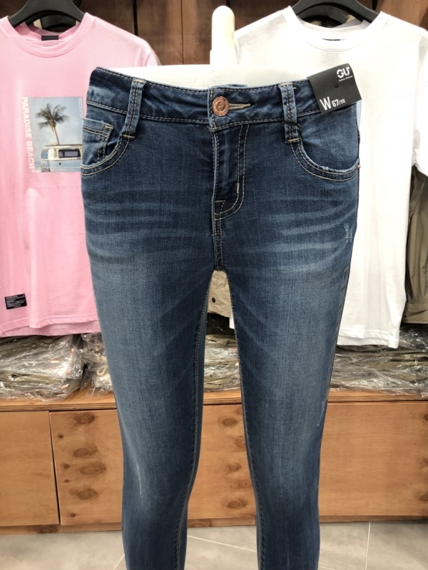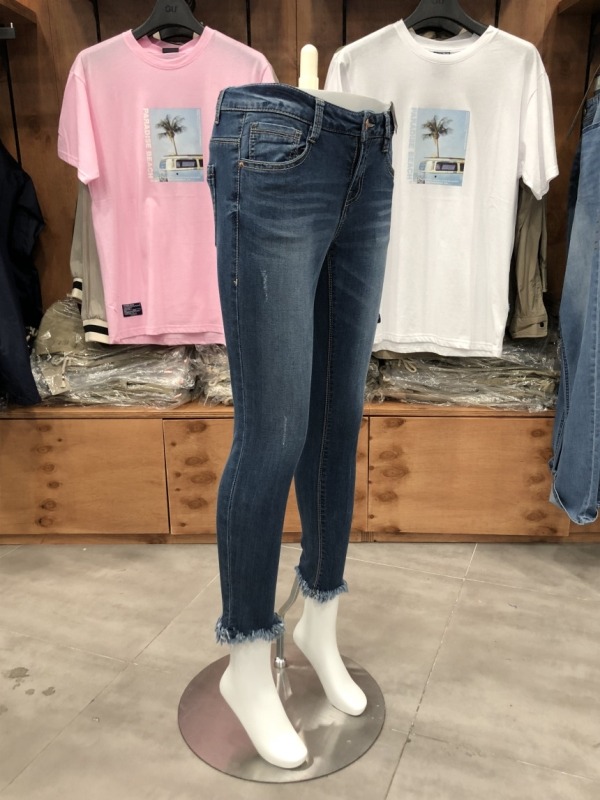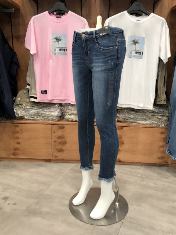 겟유즈드의 여름스키니입니다.미디엄 인디고 컬러의 저온스 미드라이즈 크롭 스키니로, 자연스러운 캣브러시와 기스구제가 있는 여름의 데일리 아이템입니다. 밑단은 완만한 'V'자구제가 되어있어 발목이 가늘어 보입니다.^^