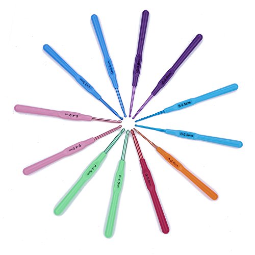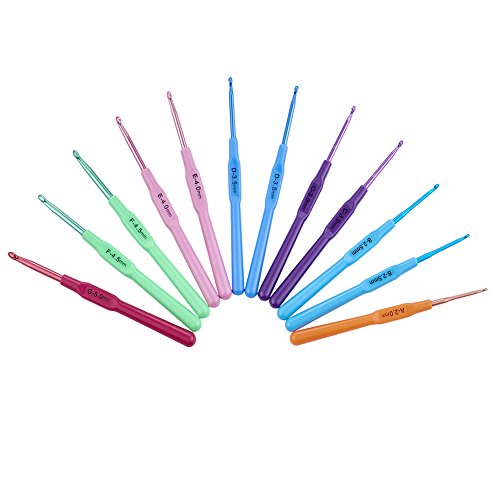 Pandahall 12pcs Random Mixed Color Ergonomic Hook 5.59x0.43 Inch Plastic Handle Alloy Crochet Hooks Needles
