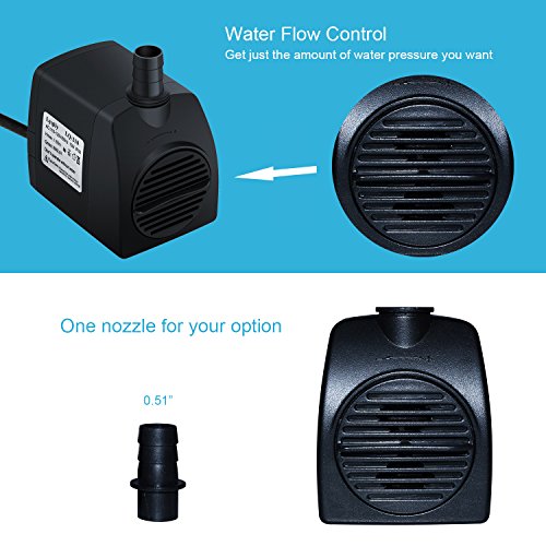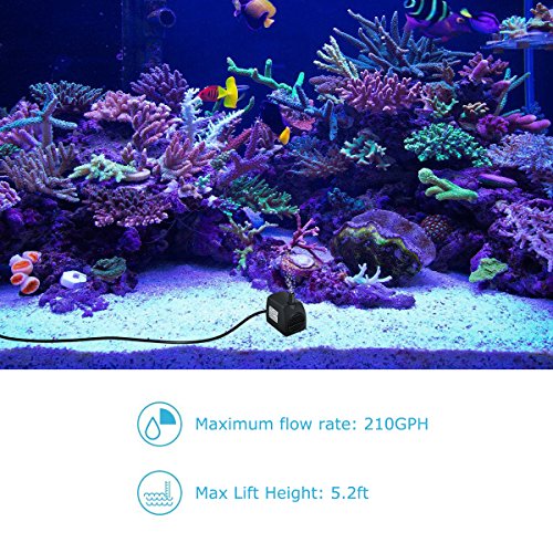 Lyqily 210GPH Submersible Pump 15W Fountain Water Pump with 5.9ft Power Cord, 1 Nozzle for Aquarium, Fish Tank, Pond, Statuary, Hydroponics
