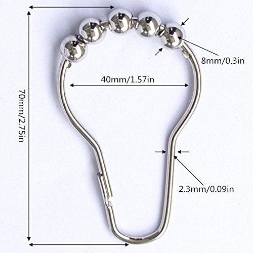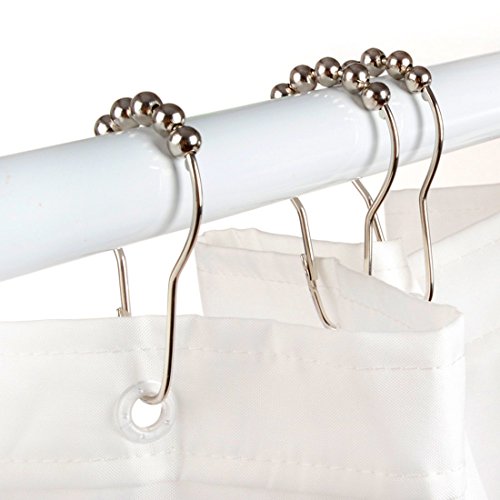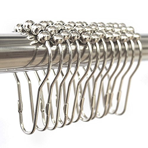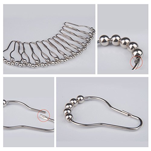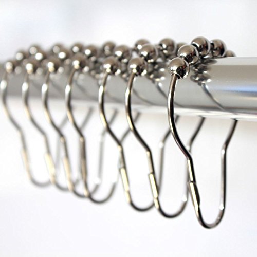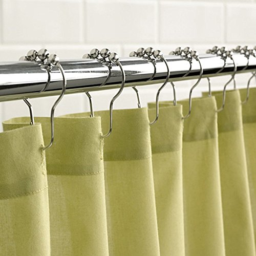 LittleOlive Heavy Duty Rustproof Stainless Steel Shower Curtain Hooks for Bathroom Shower Rod , Polished Chrome Set of 12 Rings