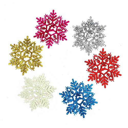 Skhls Plastic Multicolored Glitter Snowflake Ornaments Christmas Home Décor, 14 CM