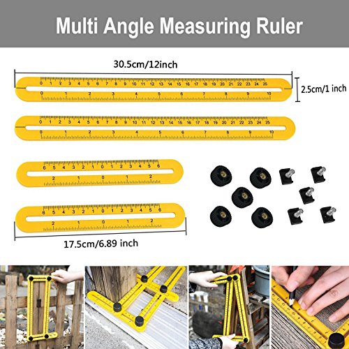 - [MULTIPLE APPLICATIONS] This Easy angle ruler can lock any desired angle as a reusable stencil for endless applications. Great for Hanging Tile,Laying Floors,Cutting Stone,Measuring all angles and forms , use it to mark the floor tiles, brick, wood, laminate, metal and more! and any DIY Projects. Perfect for Handymen, Builders, Craftsmen, DIY-ers, Architect, Engineer Designer.