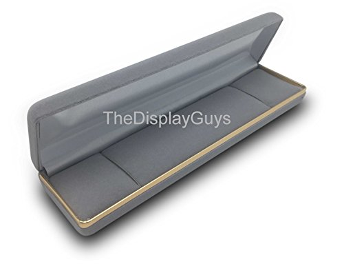 The Display Guys~ Deluxe Gray VELVET Bracelet & Watch Gift Box, Jewelry Presentation Display Case, with Gold Trim Metal Hinge (8x2x1 1/8 inch)