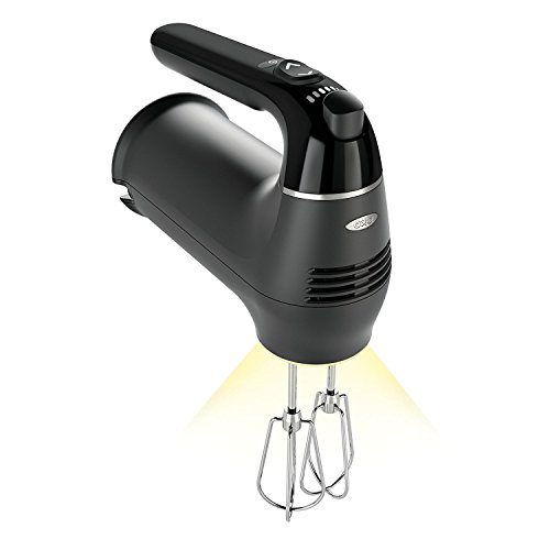 Cream cheese frosting, chocolate brownies, whipped cream, fluffy meringue. All of these yummy treats depend on precise mixing. With a light to guide you, intuitive digital controls to steadily increase or decrease speed and a consistent, powerful motor that maintains its speed no matter the workload, OXO's Illuminating Digital Hand Mixer gives you the control to create the perfect result. And when you're finished, the on-board beater clip, wrap-and-secure cord and flat, stable base allow for compact, upright storage. The Bright Hand Mixer will help make light work of your baking adventures from beginning to end. NOTE: PRODUCT IS ONLY COMPATIBLE WITH 110V OUTLETS AND CANNOT BE USED WITH TRANSFORMERS. WARRANTY IS VOID OUTSIDE OF THE USA.Feature