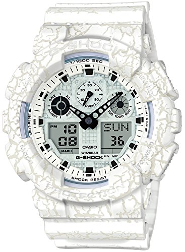 Brand, Seller, or Collection Name:Casio Model number:GA-100CG-7AJF Part Number:GA-100CG-7AJF Model Year:2016 Item Shape:Round Display Type:Analog and digital Case diameter:5.1 centimeters Case Thickness:16.9 millimeters Band Material:Resin Band Color:White Dial color:White Bezel material:Resin Special features:Timer, World time Item weight:2.56 Ounces Movement:Quartz