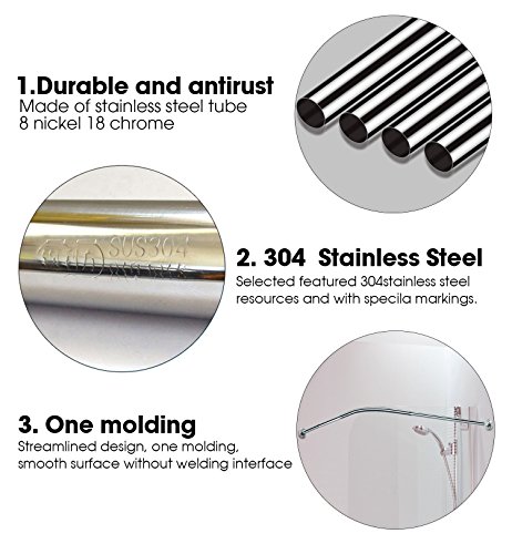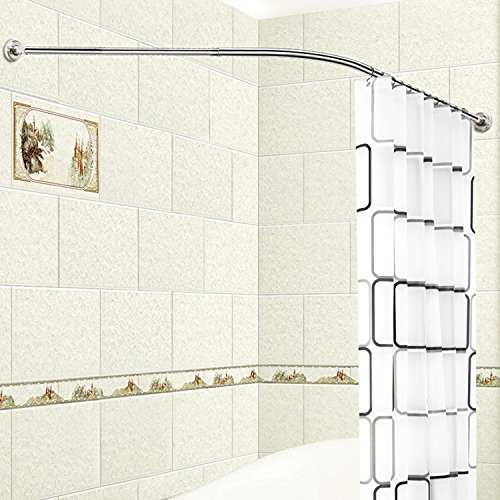 Stretchable L Shaped Bathtub Corner Shower Curtain Rod Rack 304 Stainless Steel Material Installation by Drill Hole 27.5-39.3 27.5-39.3 inches