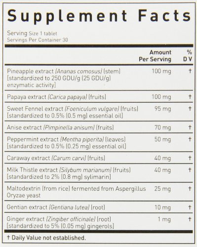 - Feature : Digestive system health / GMO Free, Dietary Supplement that supports a healthy digestive system / Vegetarian Product / Herbal Digestive Aid / Chewable Tablets