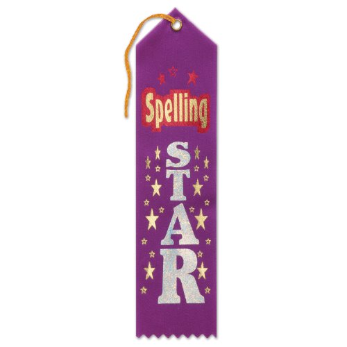 Beistle AR023 Spelling Star Award Ribbons, 2 by 8-Inch, 6-Pack