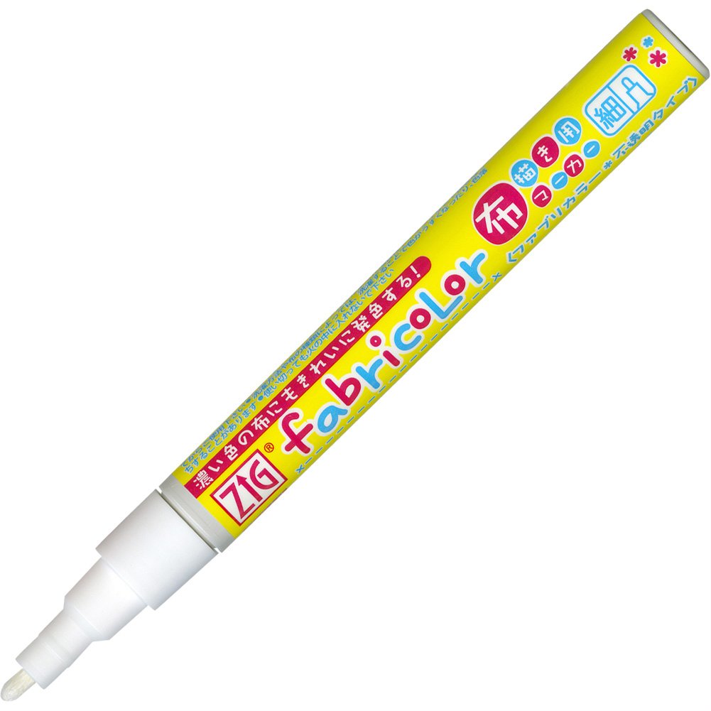 ZIGfabricolor is an opaque type white, red, blue, yellow set of four colors that colors well on dark colored fabrics.
