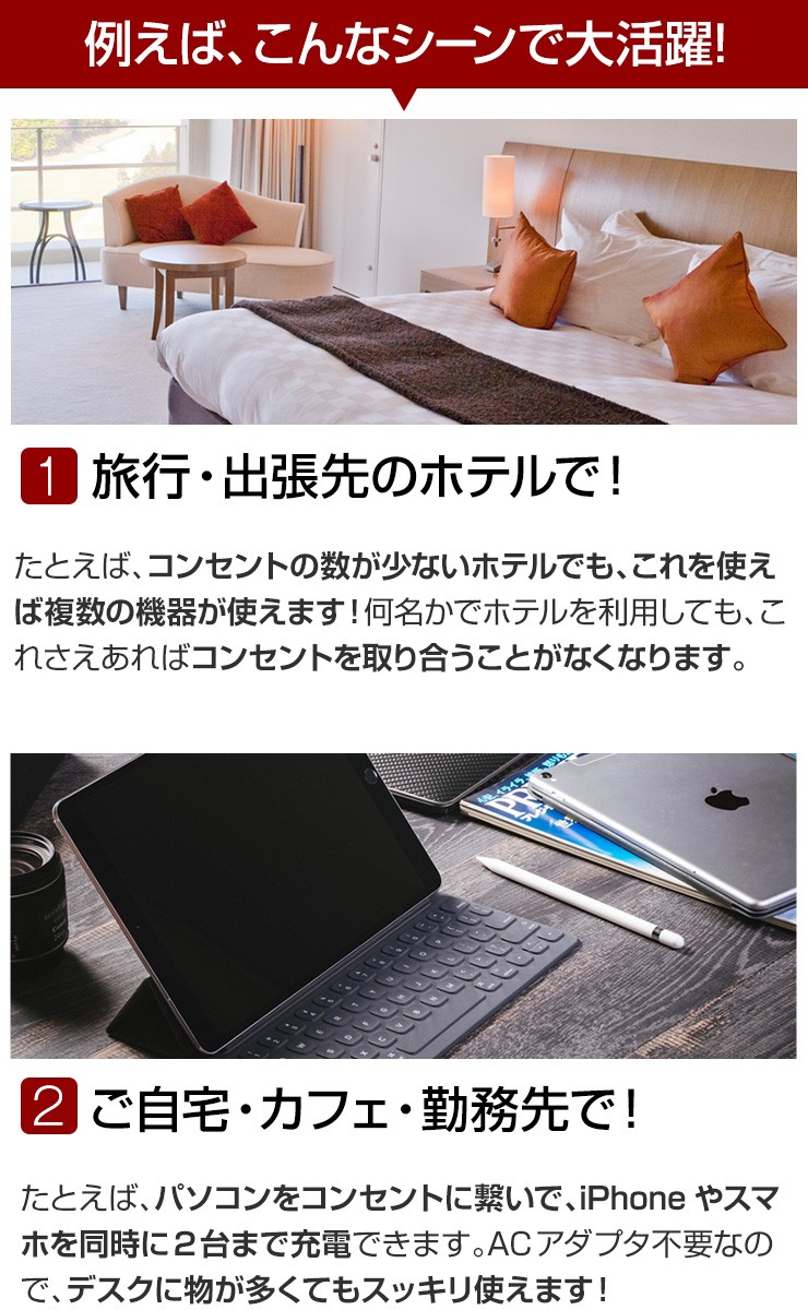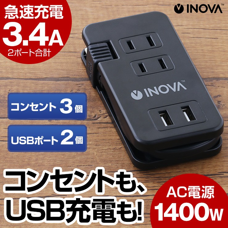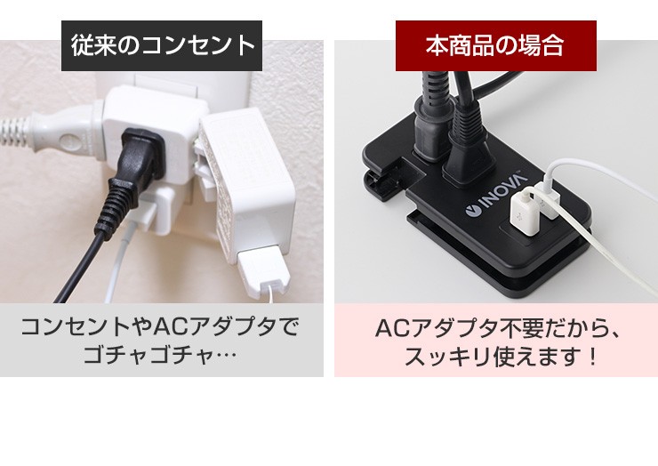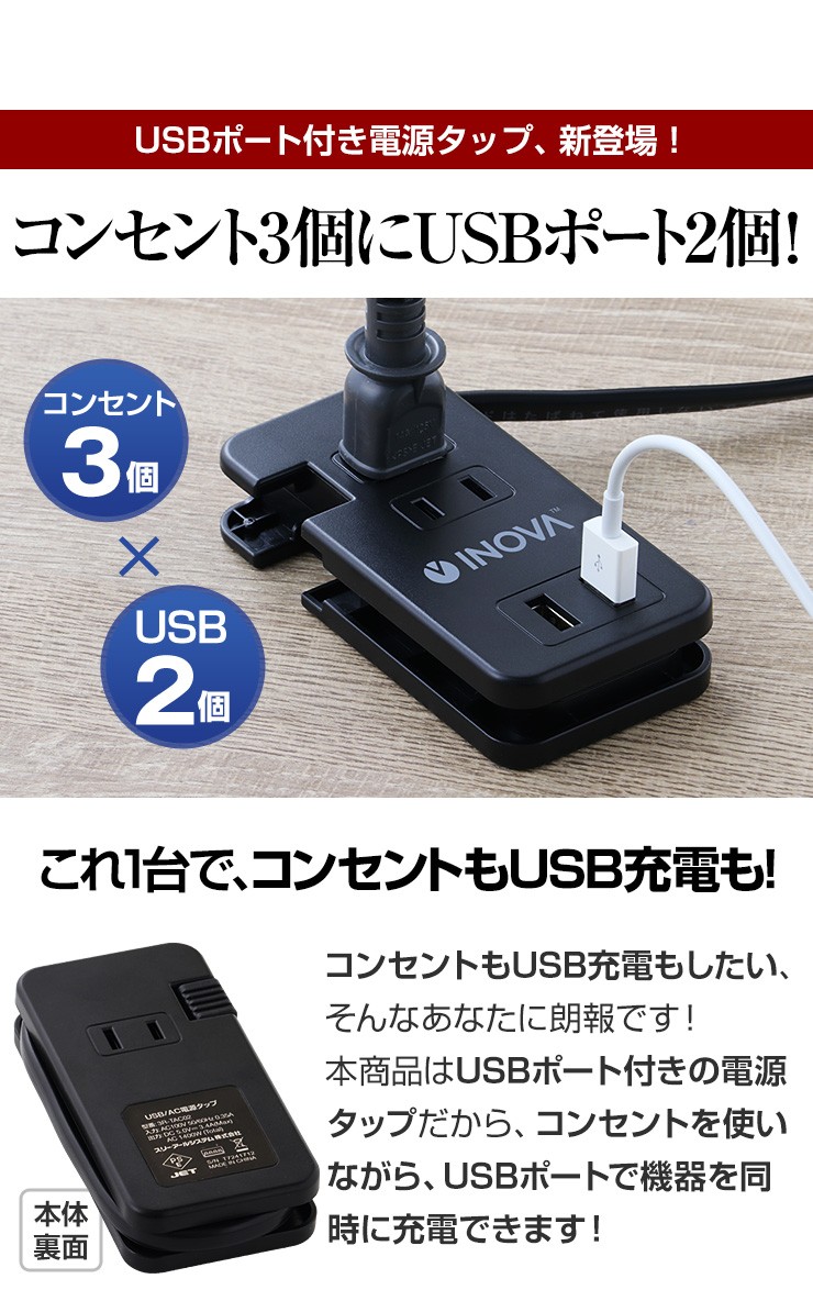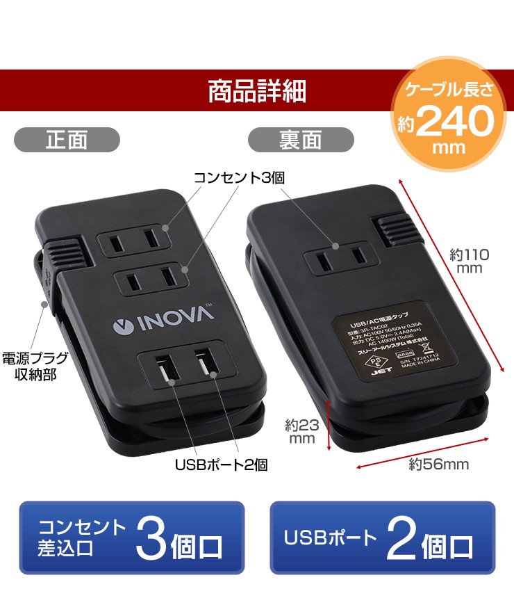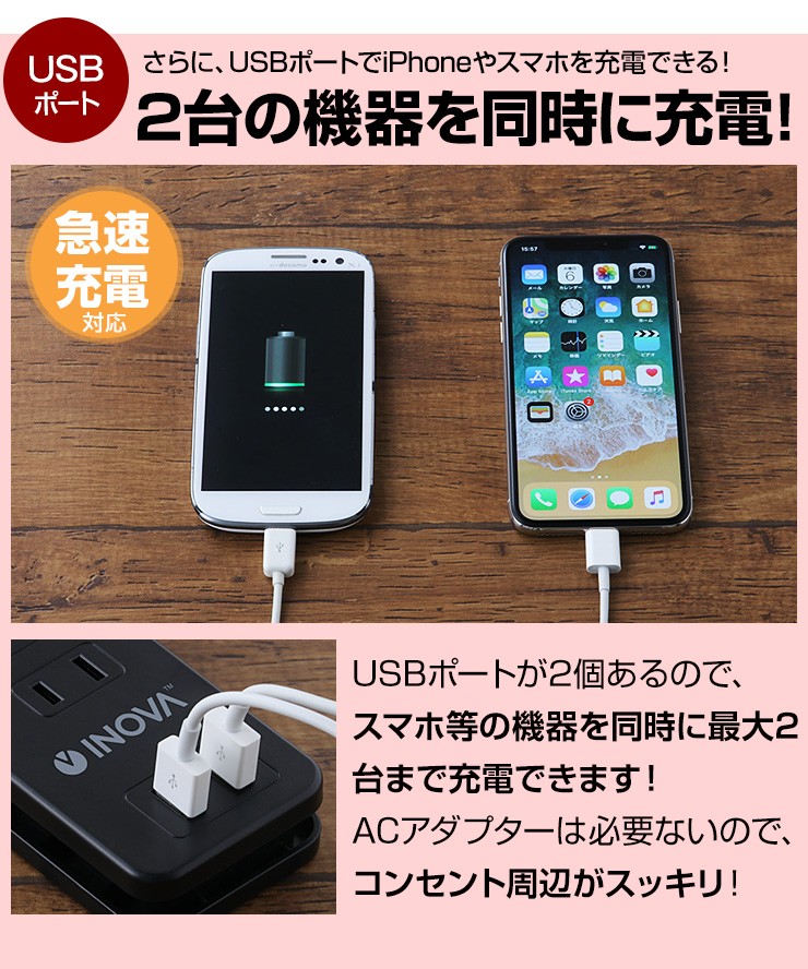 商品名 Smacube TAP2 (3.4A 2ポート USB付き 3AC 電源タップ)