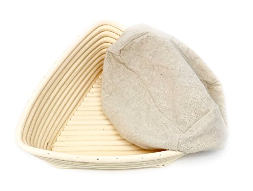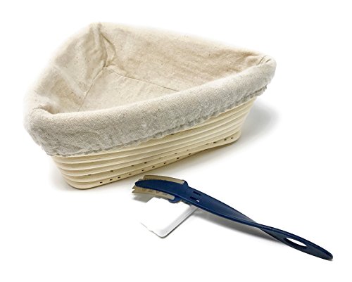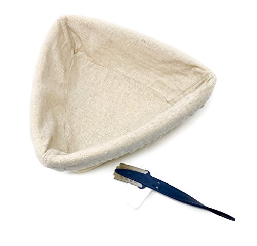 3-Piece Set - Triangle Banneton Brotform Rattan Proofing Bread Basket 8.5 Inch with Fitted Liner; Mure and Peyrot Bread Scoring Tool Lame - Bundle