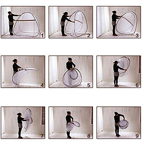 PREMIUM QUALITY - Our pop up mosquito net is easy to set up. Excellent stitching quality and strength with using polyester net cloth, dense & small mesh holes, 1 cm have 6 holes, effectively isolate mosquito.
