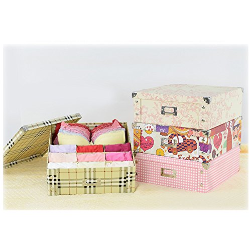 -. Feature : HAVE A NEAT AND NICE DAY FROM THE BEGINNING.Classify underwear, socks, neck ties, scarves, bras, accessories etc. Easy to find which one you want to wear and never need to ransack all of your clothes. Reduce 50% of time for dressing / COME ON AND ENJOY A CLEAR LIFE.Just put these cute boxes into your wardrobes or drawers. Turn your drawer from a cluttered, balled up mess to an organized and accessible space. / STORAGE EVERYTHING YOU LIKE. / Material: The boxes are made of paper product, which is moth-proof, mould-proof, moisture-proof, and very durable,which is high heat-proof, smooth and light. / Size(approx): 13.8x13x4.7"; Weight(approx): 1KG