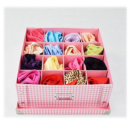 -. Title : 13.8x13x4.7" inches Paper Product Closet Organizer Box Collapsible Storage Boxes Drawer Divider for Clothing, Bra, Underwear, Blankets, Towels, Bibs (Pink&white,16grid)
