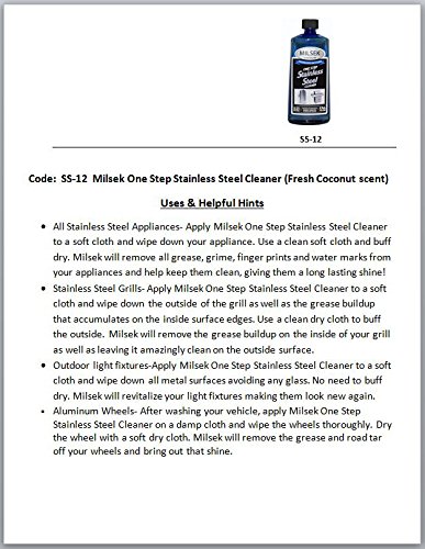 Milsek One Step Stainless Steel Cleaner will remove all grease, grime, fingerprints and watermarks from your appliances and help keep them clean for a long lasting shine. Simply apply to a soft cloth and wipe down your appliance followed by a buff with a soft dry cloth. Also great for other surfaces such as; outdoor light fixtures; exterior of outdoor grills and aluminum car wheels. One 64-Ounce bottle included.