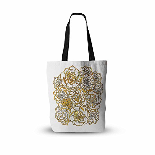 KESS InHouse Pom Graphic Design "Bohemian Succulents II" Gold White Floral Everything Tote Bag, 16" x 16", Multicolor