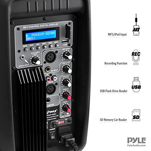 Pyle Powered Active PA Loudspeaker System - 10 Inch Sub woofer Monitor Built in USB for MP3 Amplifier - DJ Speakers Party Sound Equipment Stereo Amp Sub for Concert Audio or Band Music (PPHP103MU)