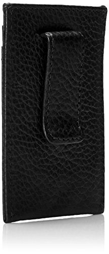 Pebbled-leather card case featuring logo embossed at front and leather-covered money clip at back