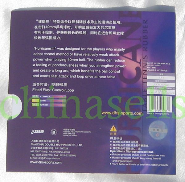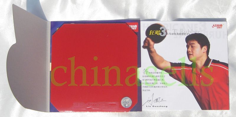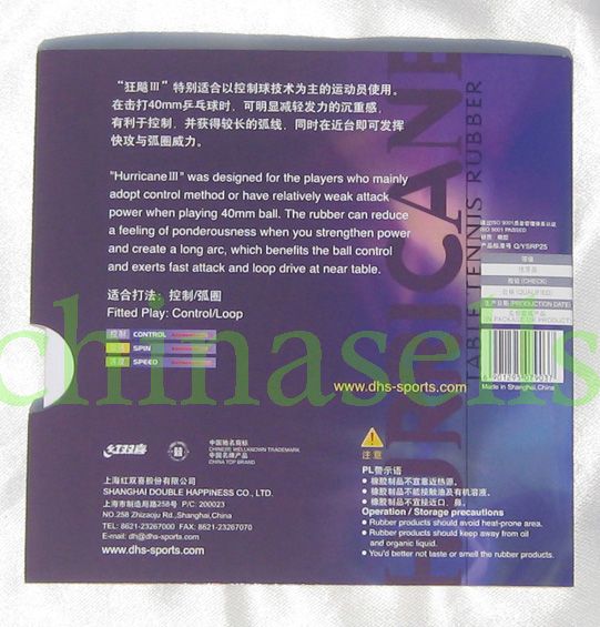 1.“Hurricane III” was designed for the players who mainly adopt control method or have relatively weak attack power when playing 40MM ball. The rubber can reduce a feeling of ponderousness when you strengthen power and creat a long arc,which benefits the ball control and exerts fast attack and loop drive at near table.
