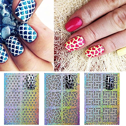 - MULTI-USE: EASY to use on natural or false nails; Use as Nail Stencil or leave as holo design