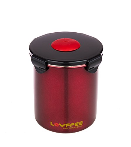 LOVFFEE 1 Lb Coffee Storage Container Airtight Canister with Coffee Scoop, Stainless Steel - Ultimate Coffee Beans Storage Solution 16Oz (Red)