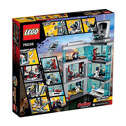 -. Feature : Enthält 5 Minifiguren mit Ausrüstung und Zubehör: Ultron, 2 Iron Legion Komplizen, Iron Man und Thor / Mit Ausklapp-Funktion für einen leichten Zugang, Roboter-Abteilung mit Feuerlöscher, Labor mit Roboterarmen, JARVIS-Kontrollraum mit Geheimwaffe, Foyer, Krankenstation mit Liege, Analyselabor mit Lokis Zepter, Dach mit versteckter Drohne mit 2 Shootern, 2 Dach-Shooter, Türen, Fenster, Balkon mit versteckten Shootern, 2 Gläser und Explosionsfunktion / Enthält Thors Hammer / Als Zubehör sind ein Super Jumper und Düsen für Ultron, die Iron Legion Komplizen und Iron Man sowie eine Perücke für Iron Man enthalten / Analysiere Lokis Zepter im Analyseraum