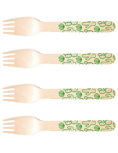 Perfect Stix-Sucre Shop Cactus-20 Wooden Cutlery forks with Cactus Themed Print (Pack of 20)