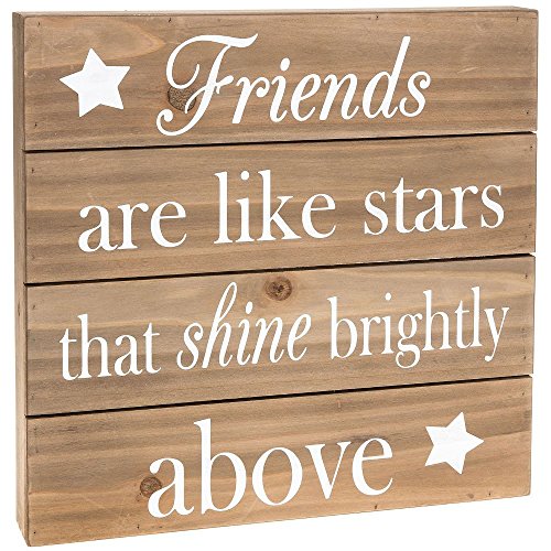 - Simplistic and elegant wooden wall plaque with text "Friends are like stars that shine brightly above".