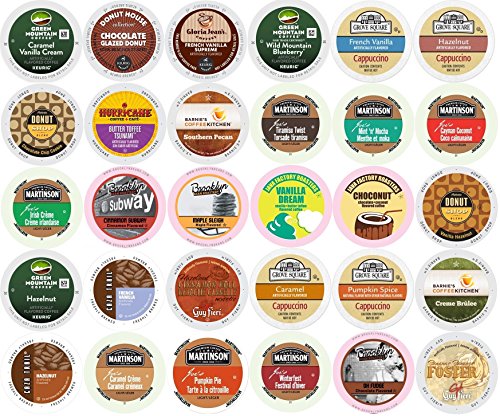 30-count K-cup ALL FLAVORED Coffee Variety Pack - Green Mountain, Grove Square, Authentic Donut Shop, Barnie’s, Hurricane, Martinson, Brooklyn...