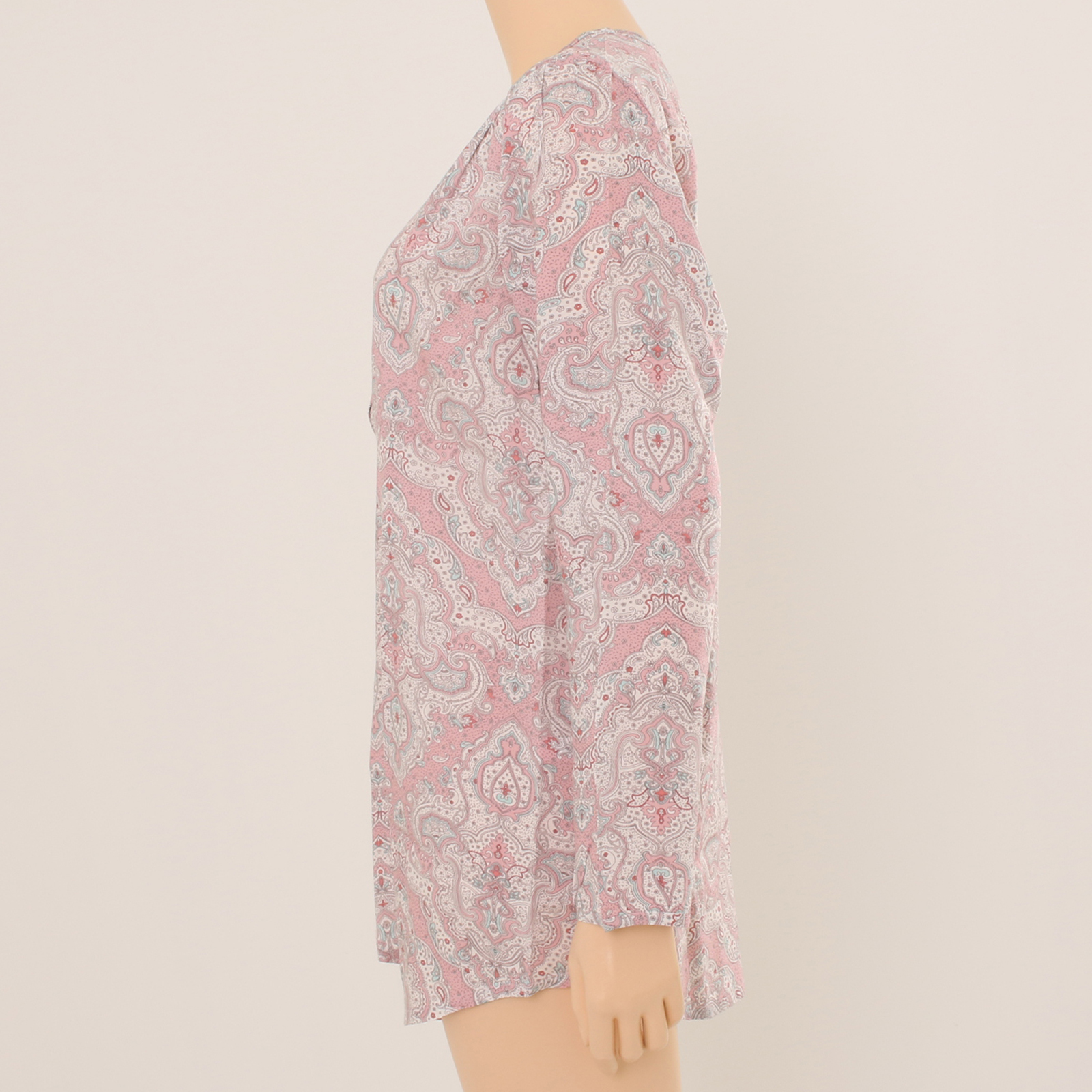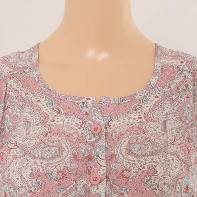 소프트한 칼라감을 사용한 페이즐리 나염으로 부인군 이지웨어 세트를 구성하였습니다.