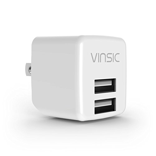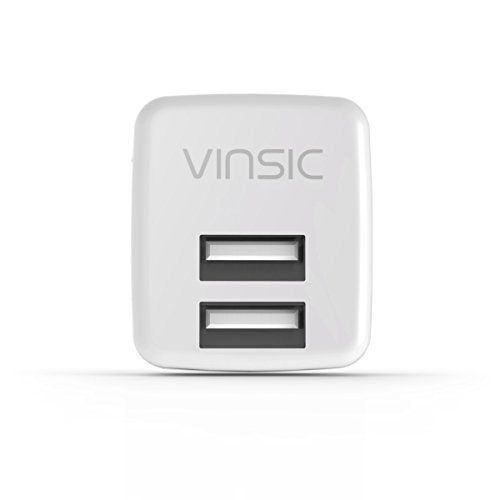 USB Charger, Vinsic 2.4A USB Charger 12W Dual USB Wall Charger for iPhone 5 5s 5c, iPad, samsung galaxy, and Android or USB Devices (White)