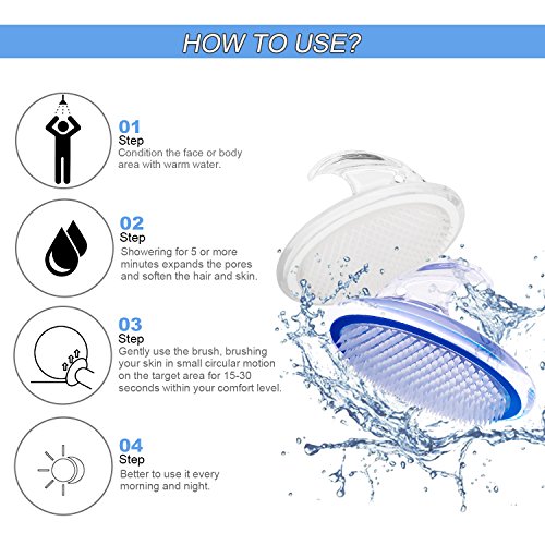 - 【PROPER USE】: Condition the face or body area with warm water. ✔ Showering for 5 or more minutes expands the pores and soften the hair and skin. ✔ Gently use the brush, brushing your skin in small circular motion on the target area for 15-30 seconds within your comfort level. ✔Better to use it every morning and night. ✔