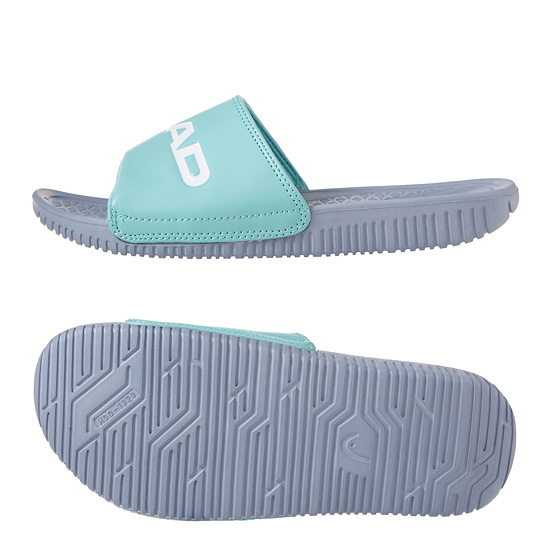 - 그레이와 민트 컬러배색이 돋보이는 더비 17 여성 슬리퍼.