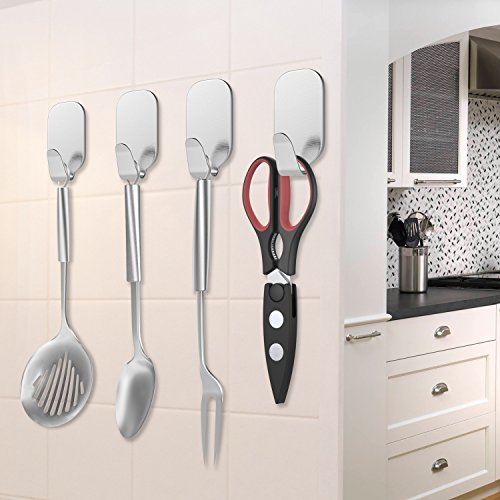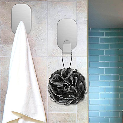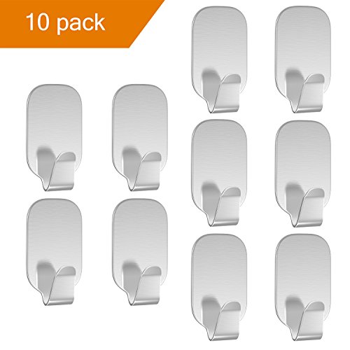 Luxspire 10PACK 3M Self Adhesive Hook Kitchen Bathroom Wall Door 304 Stainless Steel Stick Holder Hanger Brushed Finish