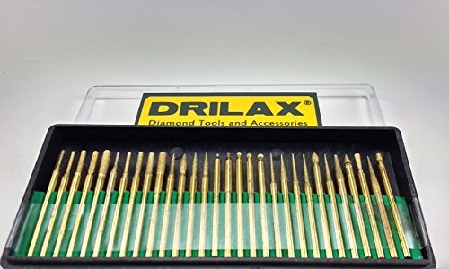 Drilax 30 pcs Titanium Coated Diamond Burs Set Assorted Shapes Cone Cylindrical Round Bit Bur Kit Jewelry Beach Sea Glass Shells Gemstones Lapidary 1/8" Shaft