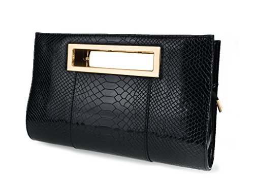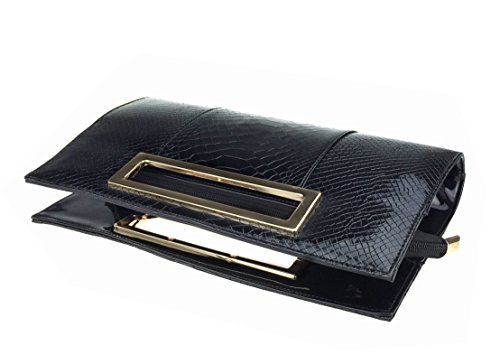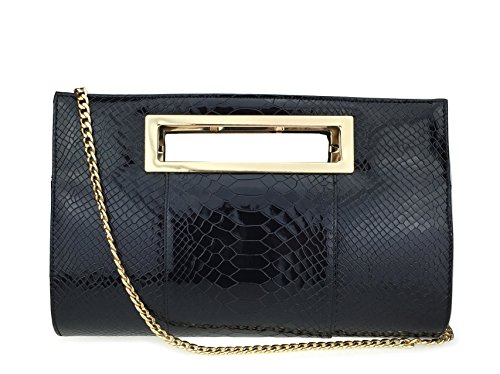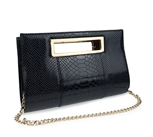 -. Brand : Mogor -. ClothingSize : One Size -. Department : womens -. Feature : MATERIALS: faux leather exterior, polyester interior / Cutout metal handle;Top Zipper Closure; Removable Shoulder Straps; / Interior slip pocket, interior cell phone pocket, center zipper compartments / Proximate Dimensions: 11.8X7x2.4(inch);Please notice:For the packing and transport cause wrinkled of bag ,you could iron to make it get well.and please allowed a slight color diffrerent. / A perfect evening clutch for all special events -. ProductGroup : Shoes -. ProductTypeName : HANDBAG -. Size : One Size -. Title : Mogor Classic Crocodile Pattern Faux Patent Leather Clutch with Shoulder Strap Womens Handbag